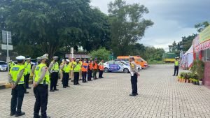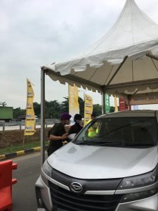 Exit tol – Arah menuju pelabuhan merak, RESIMEN SAT.2 C STPDN RANGKASBITUNG -Petugas membagikan player/brosur serta stiker khusus kendaraan yang akan menyebrang pelayanan Natal 2022 dan tahun baru 2023, kamis(22/12/2022)